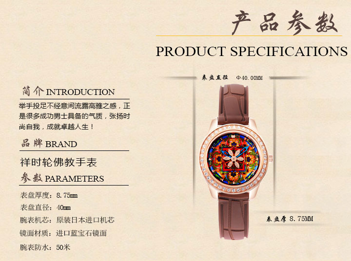 著于身、觸于手、藏于家可逢兇化吉,遇難呈祥;表芯無始無終轉動不息,威力無比;時光與佛法律動,分分秒秒佛佑相伴。一切所求,無不滿足。